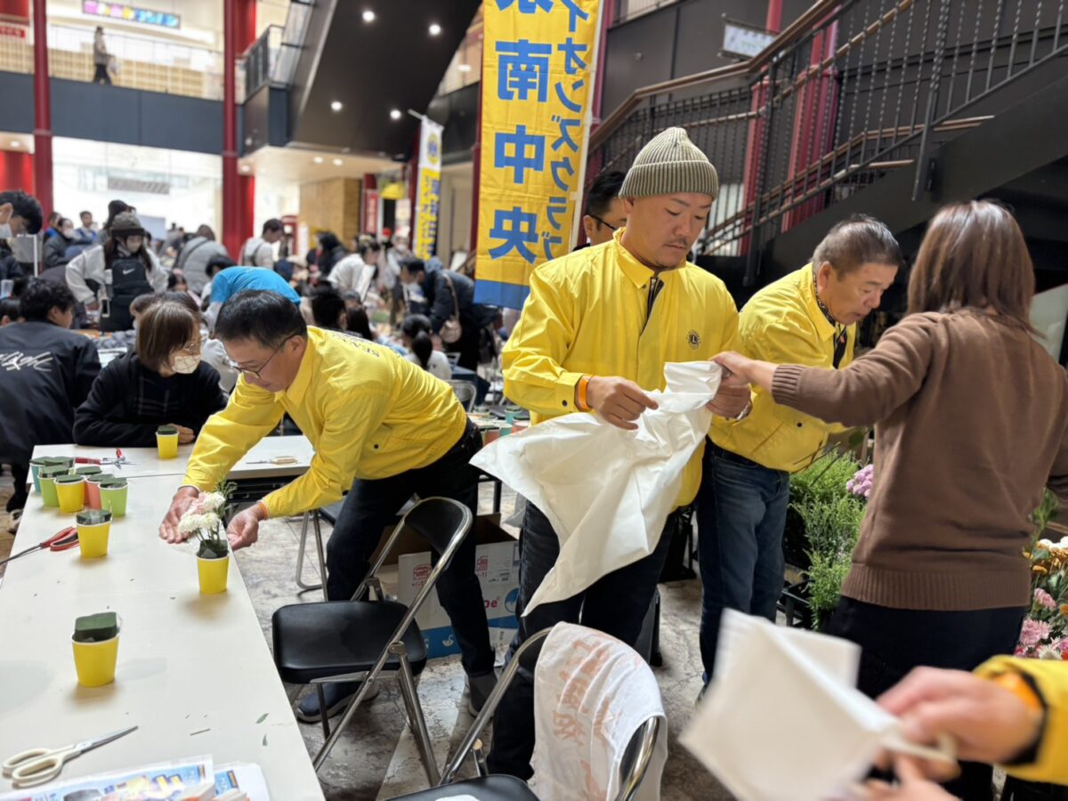 本日は8R合同アクティビティを南海浪切ホール・岸和田カンカンベイサイドモールで開催いたします。お天気にも恵まれ、心弾むようなアクティビティとなりました。また、クラブメンバー、ライオンレディーや家族と一緒に来場者の方々とフラワーアレンジメントを楽しみ、会場は華やかな雰囲気に包まれました。
