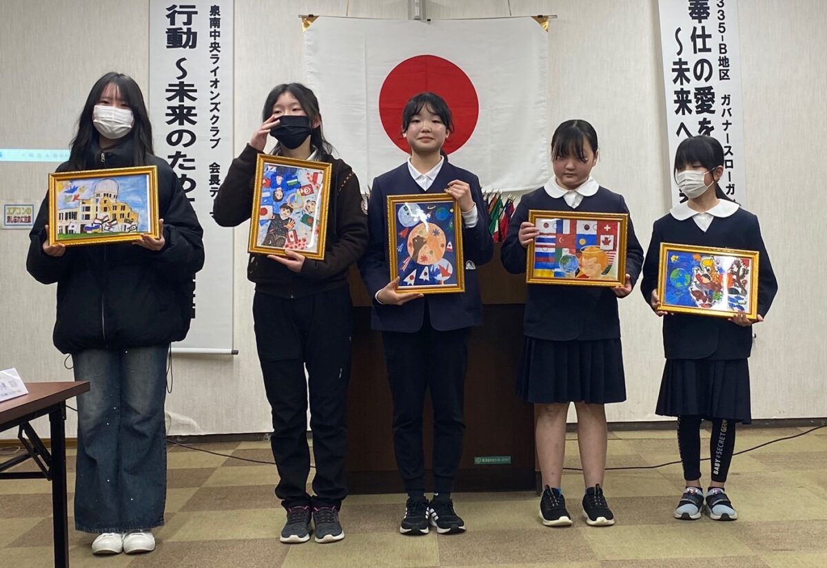 本日は平和ポスター表彰例会として泉南市と阪南市の小学生5名の方をお招きし優秀作品の表彰を行いました。受賞者の皆様、ご家族の皆様に喜んで頂いたようです。